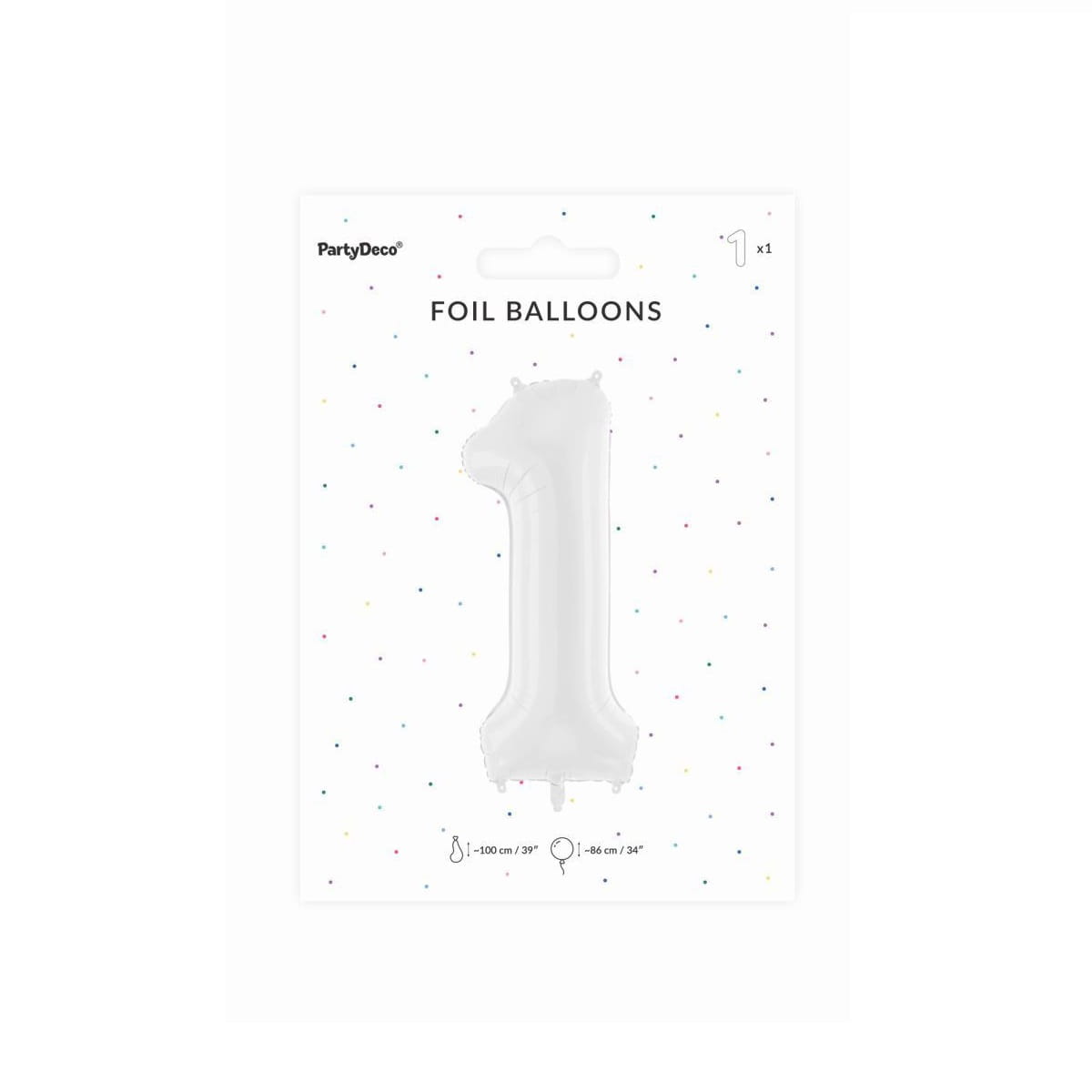 Balon foliowy cyfra 1 biały 85 cm