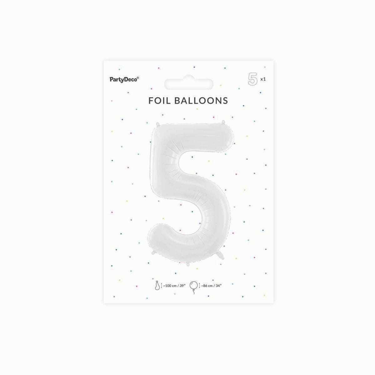 Balon foliowy cyfra 5 biały 85 cm