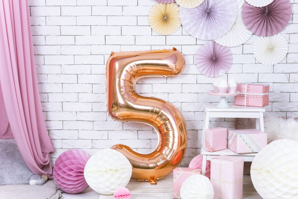 Balon foliowy cyfra 5 różowe złoto 85 cm