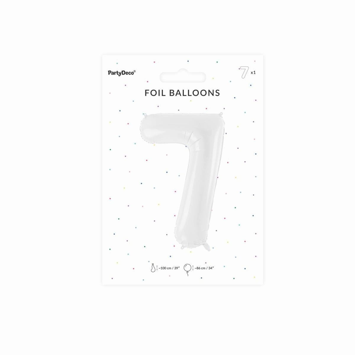 Balon foliowy cyfra 7 biały 85 cm