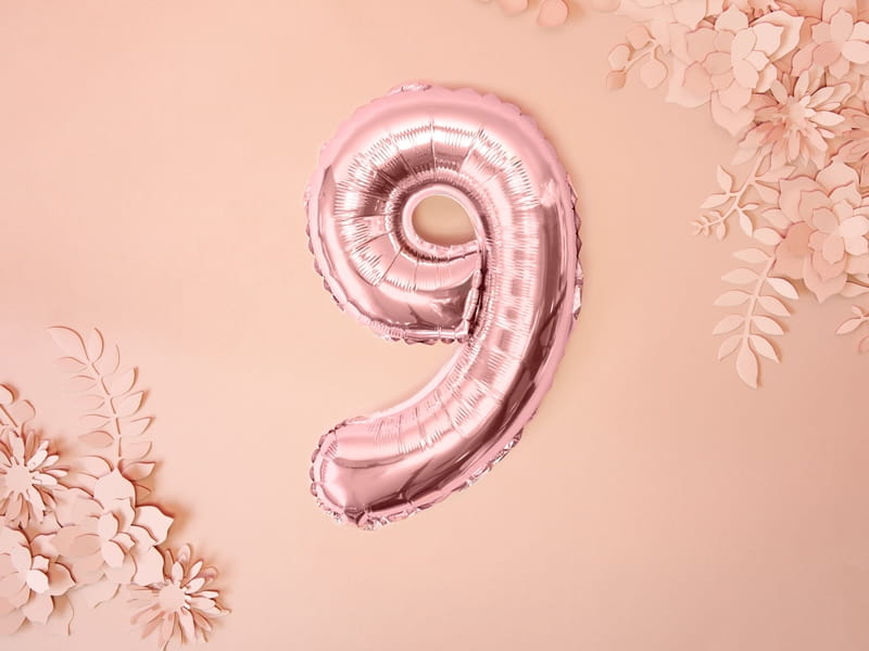 Balon foliowy cyfra 9 różowe złoto 35 cm