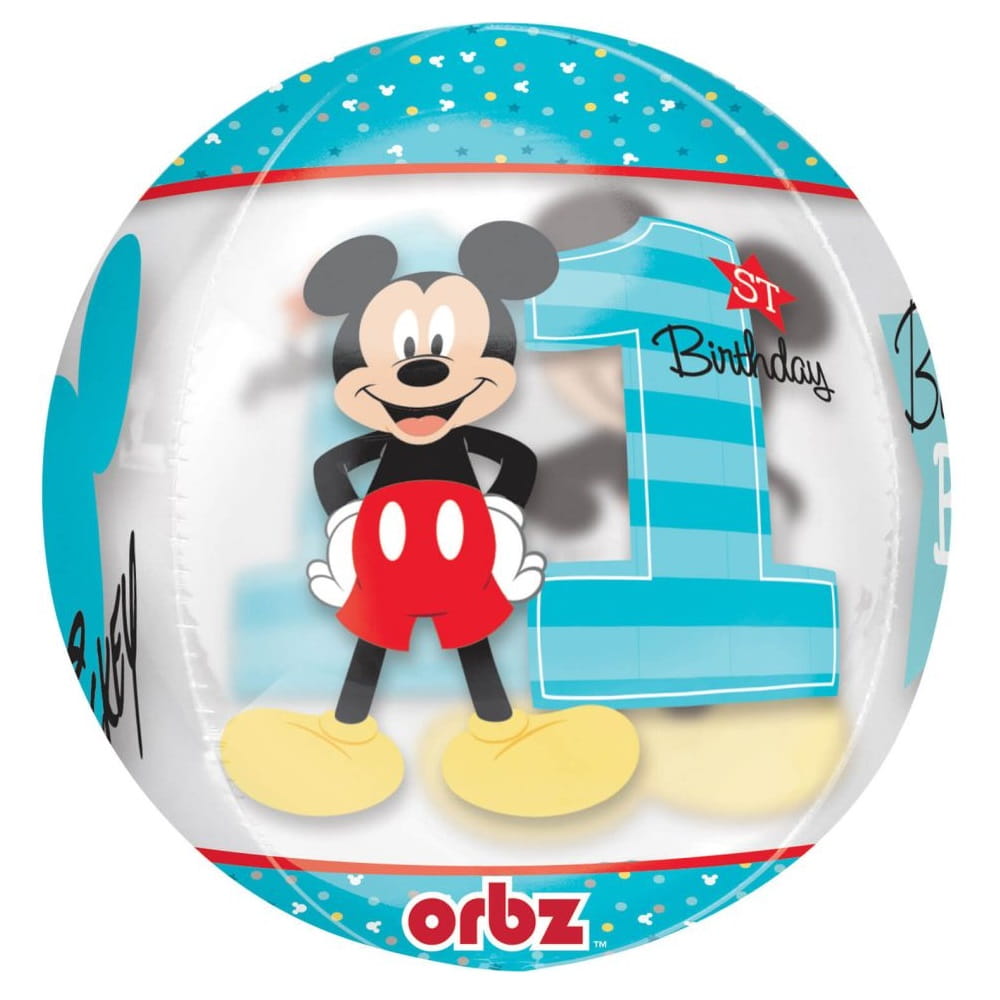 Balon foliowy na roczek Myszka Miki błękitny 40 cm