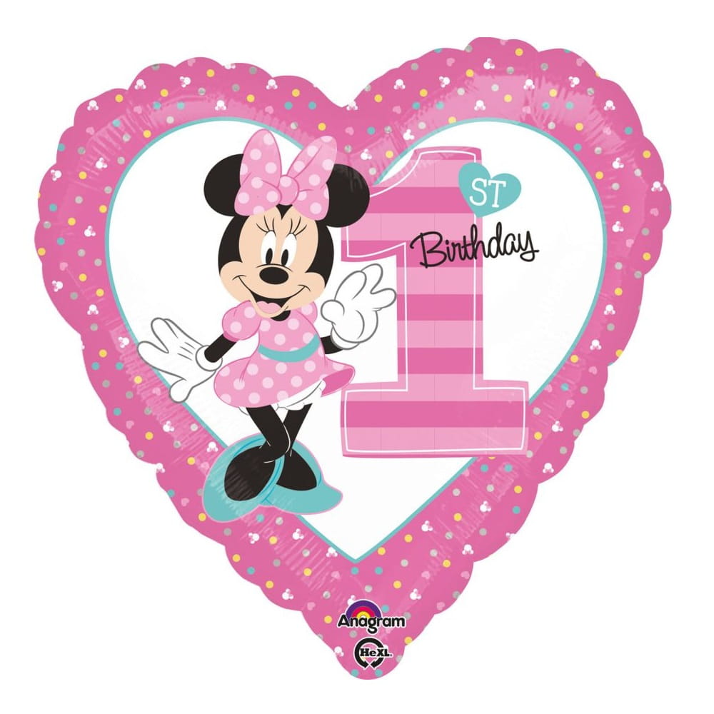 Balon foliowy na roczek Myszka Minnie serce różowy 48 cm
