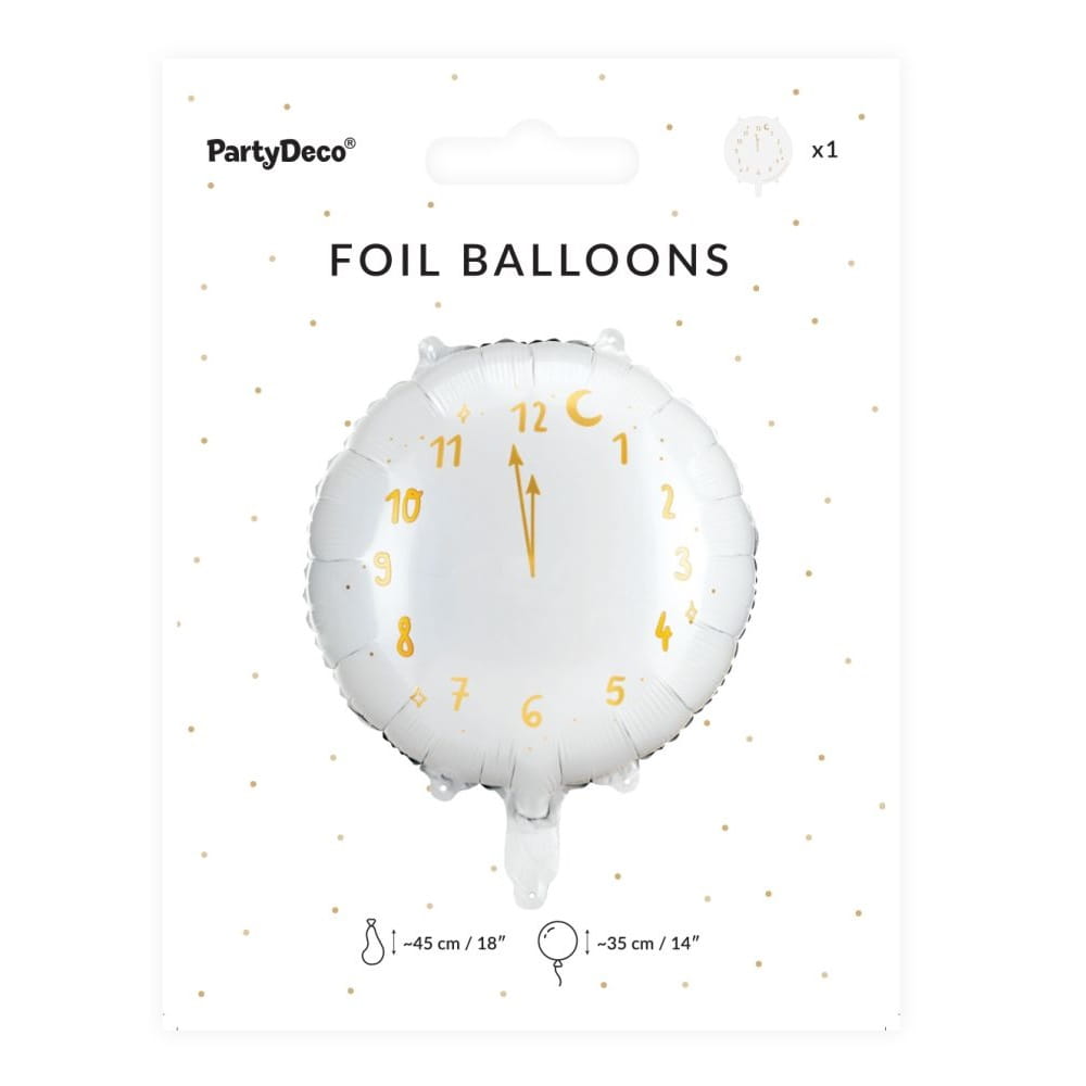 Balon foliowy zegar na Sylwestra biały 35 cm