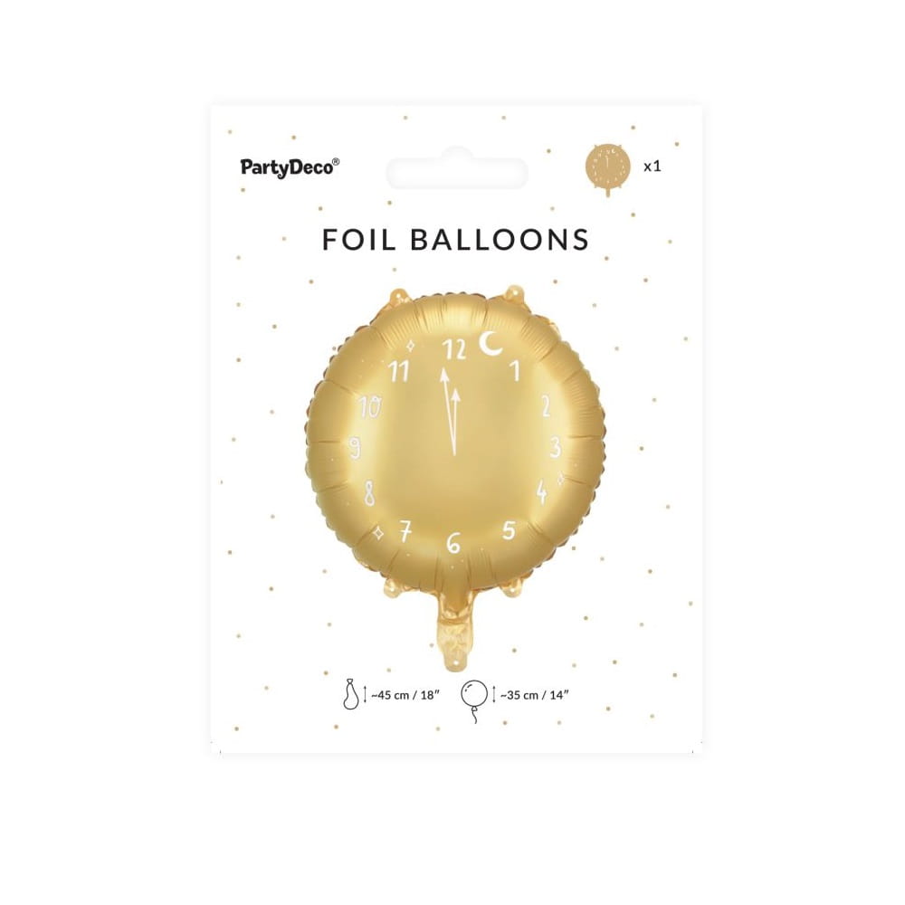 Balon foliowy zegar na Sylwestra złoty 35 cm