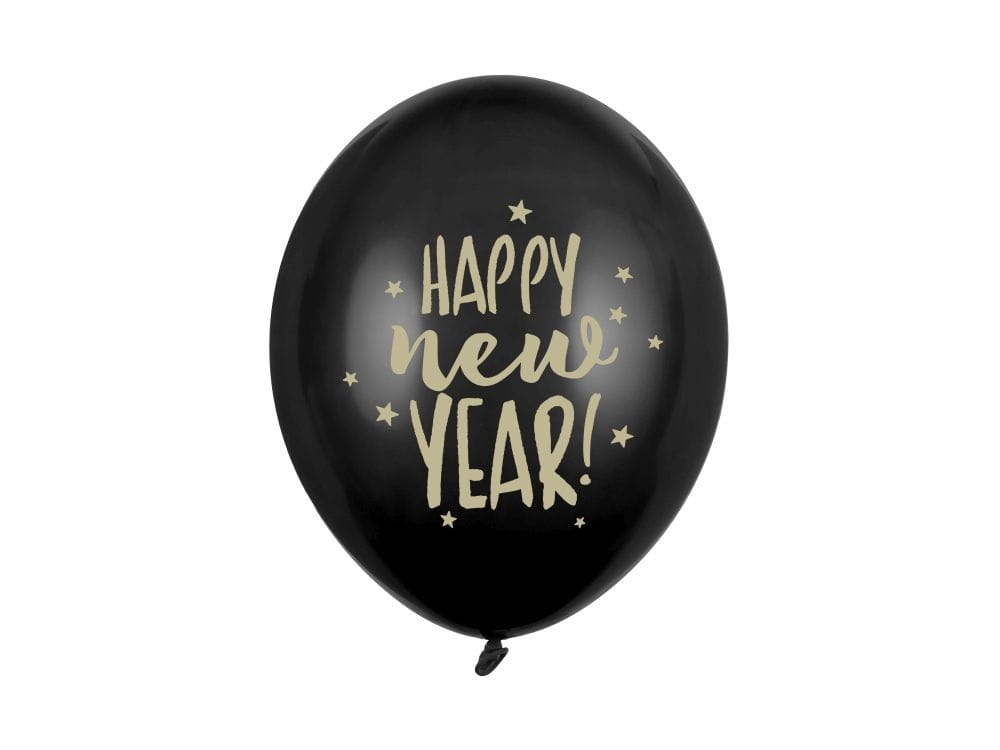 Balony Happy New Year! czarne 30 cm 14 cali 6 szt