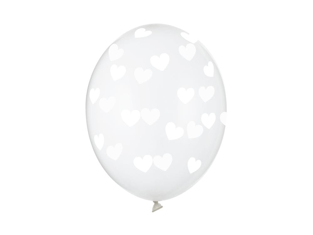 Balony transparentne w białe serduszka 30 cm 14 cali 6 szt