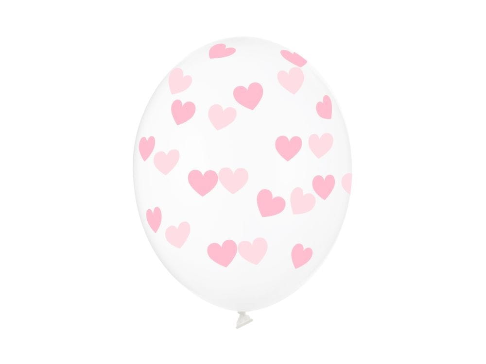 Balony transparentne w jasnoróżowe serduszka 30 cm 14 cali 6 szt
