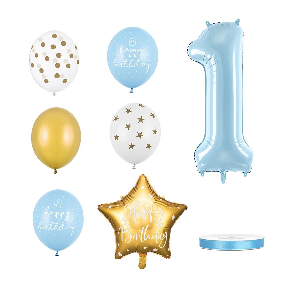 Zestaw składa się z 7 balonów i satynowej tasiemki: