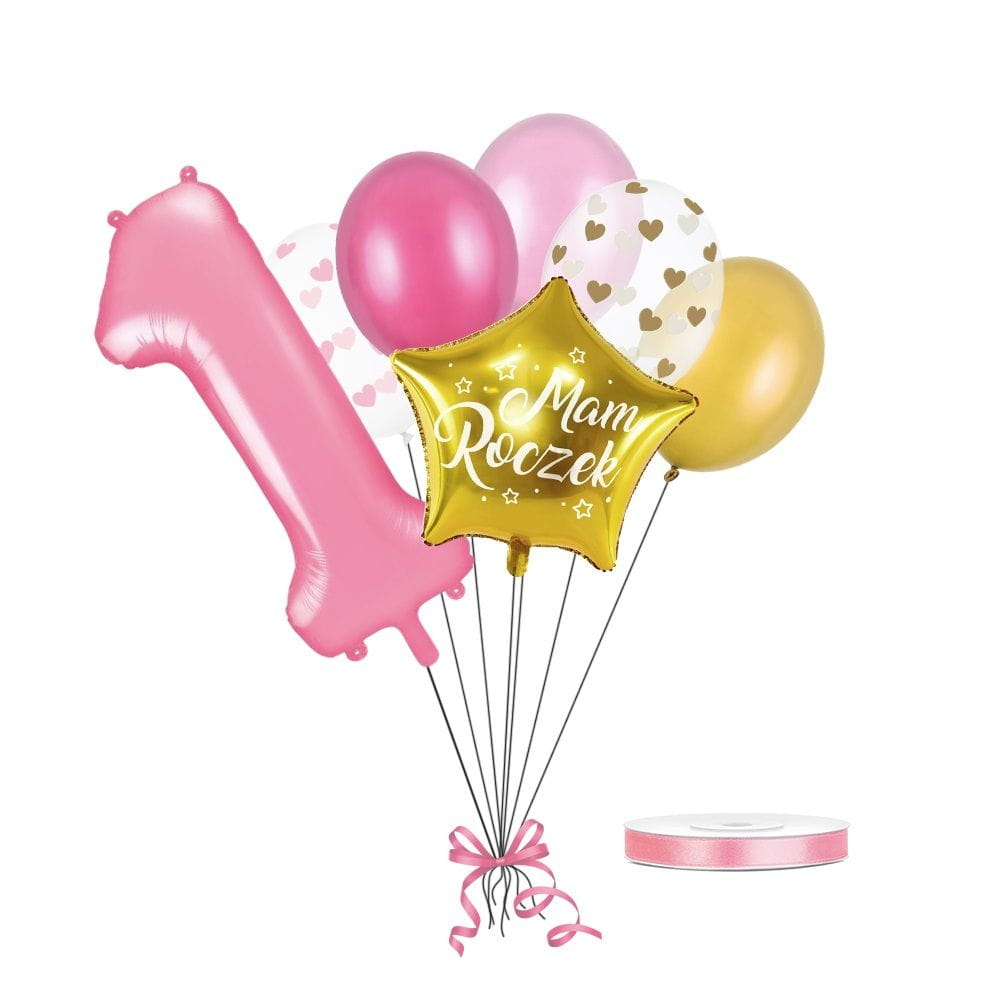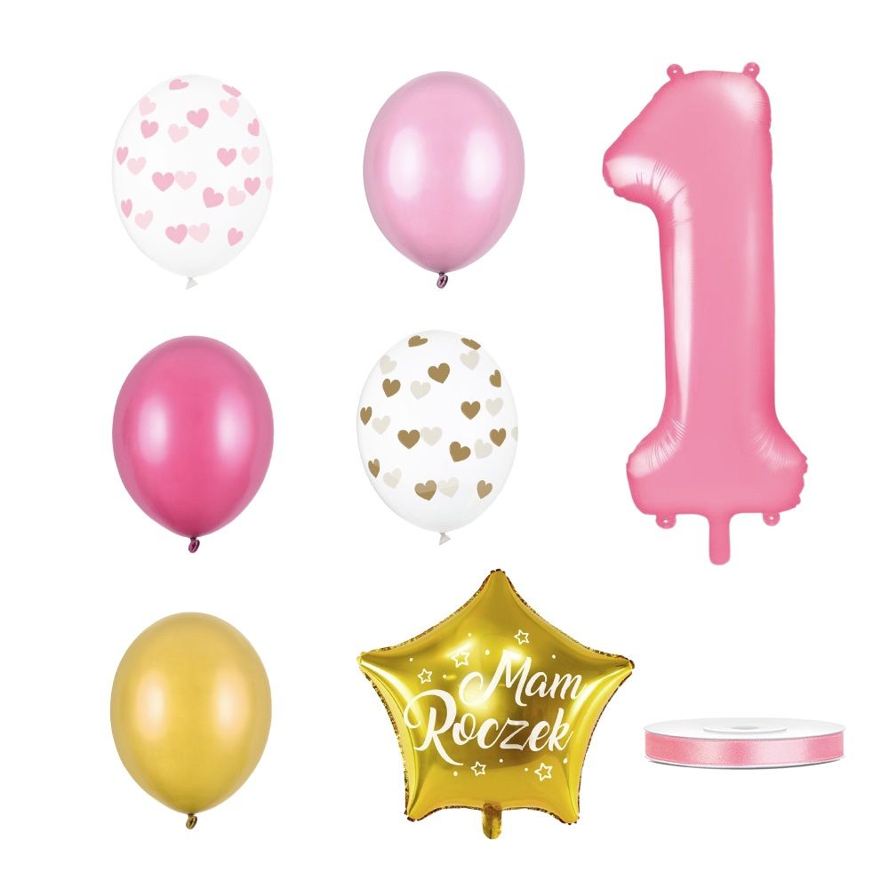 Bukiet z balonów na roczek dziewczynki złoto różowy