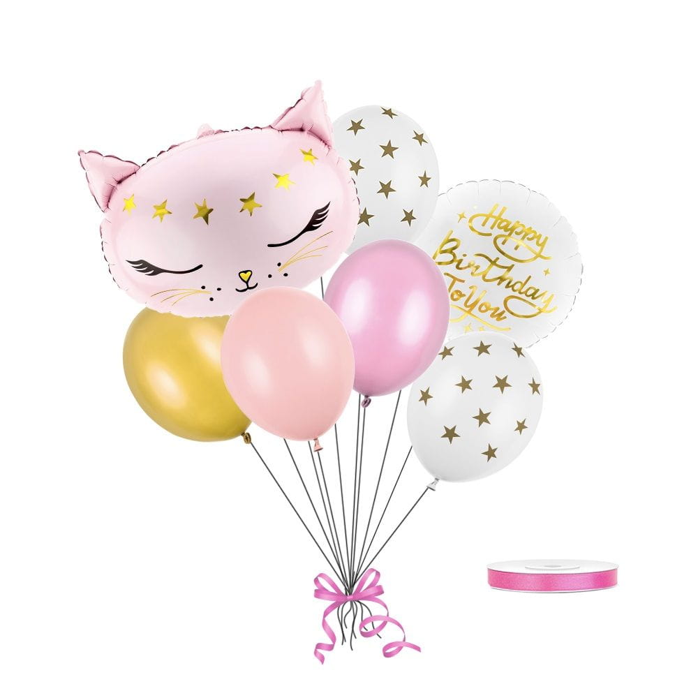 W zestawie obowiązkowo znajduje się balon z napisem Happy Birthday to You, który wprowadzi niezwykłą, urodzinową atmosferę. Oferowany bukiet balonów z jasnoróżowym kotkiem to również wspaniałe tło do zdjęć pamiątkowych z imprezy!