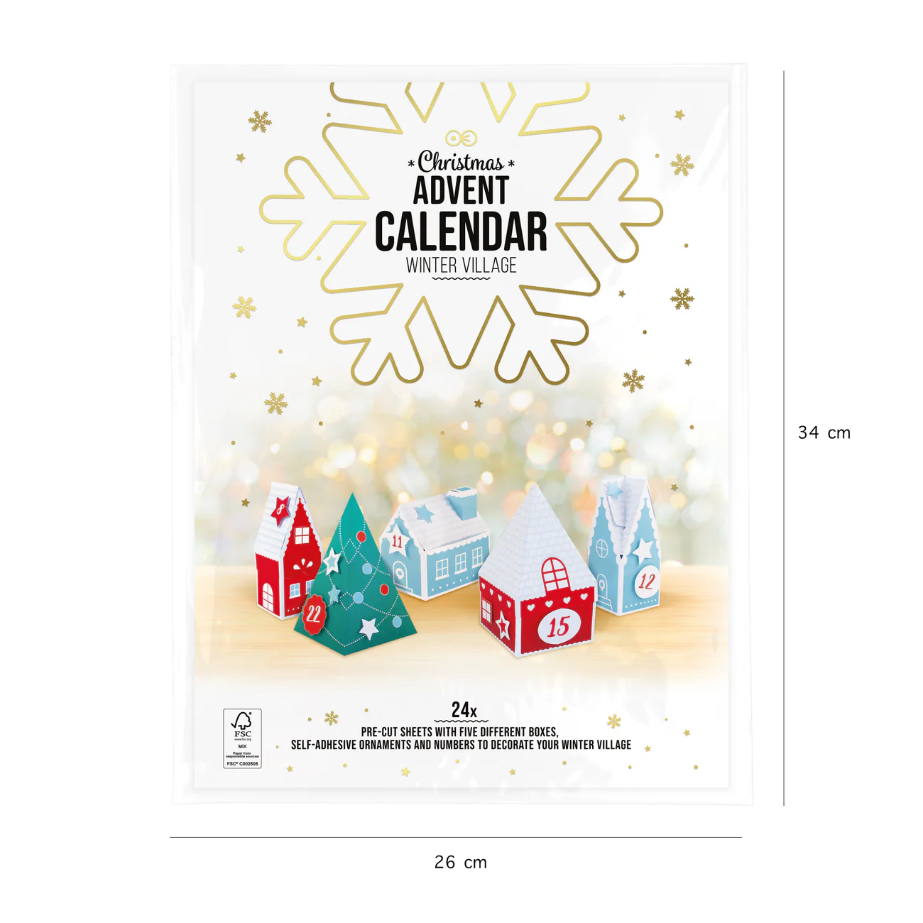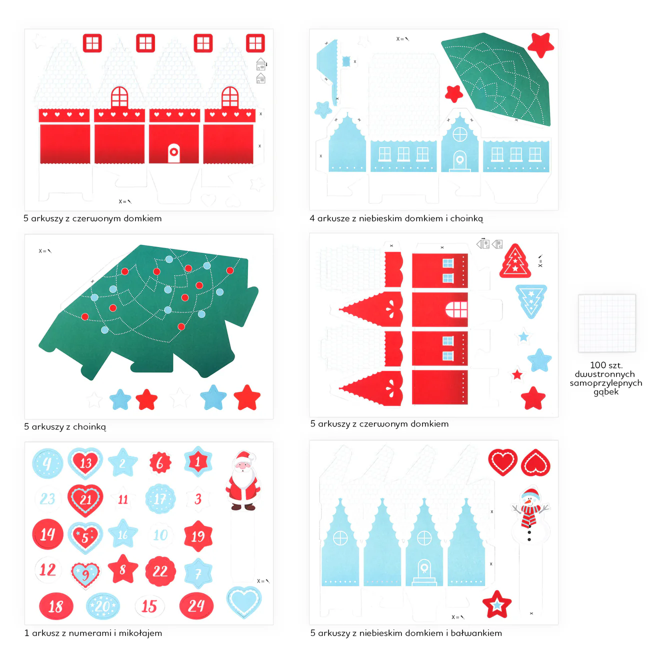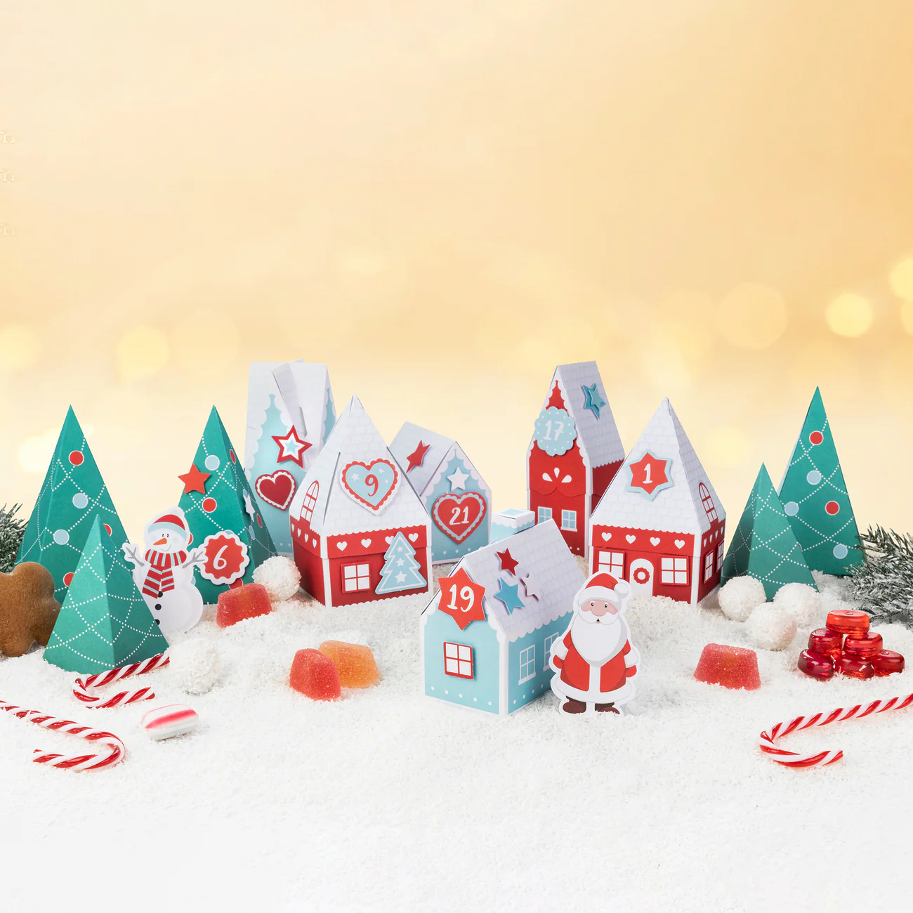 Kalendarz adwentowy domki z papieru, do samodzielnego złożenia.