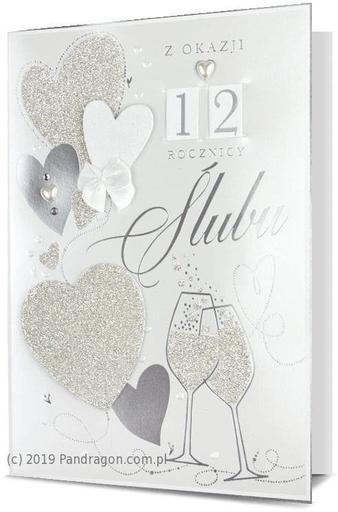 Kartka posiada przesuwane cyferki, pozwalające ustawić dowolną rocznicę ślubu.