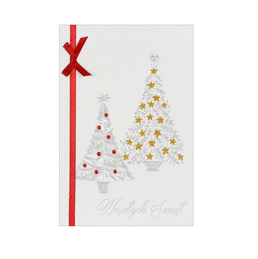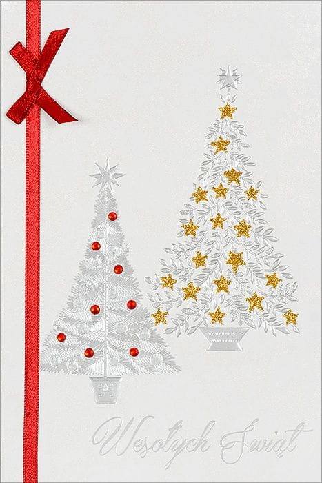 Oferowana kartka Bożonarodzeniowa jest bardzo elegancka i bogato zdobiona.