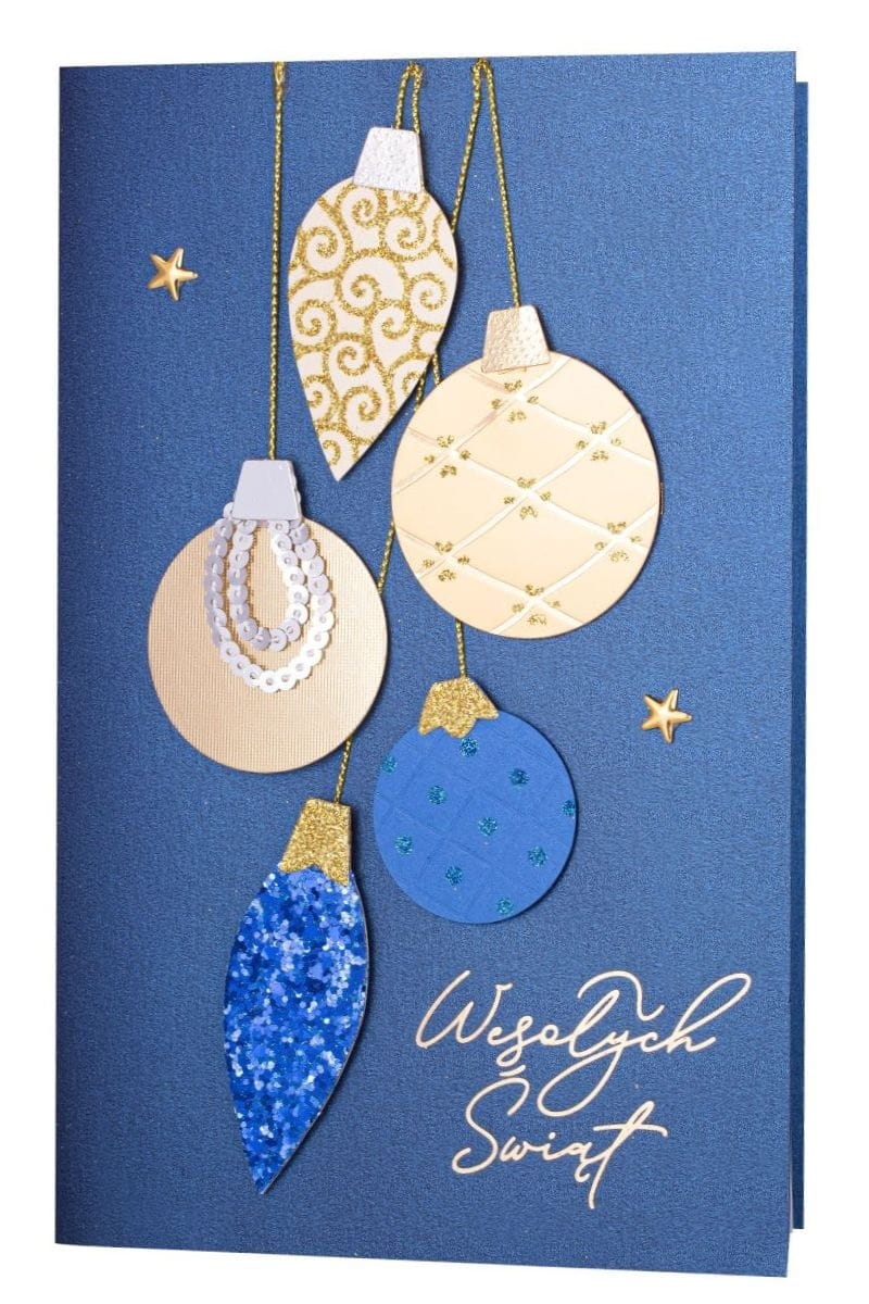 Oferowana kartka Bożonarodzeniowa jest bardzo elegancka i bogato zdobiona.