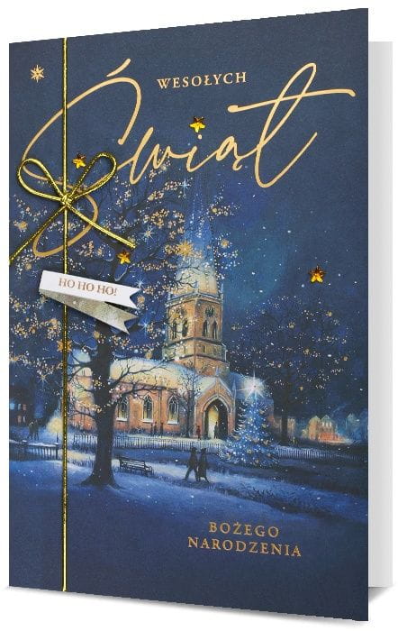 Oferowana kartka Bożonarodzeniowa jest bardzo elegancka i bogato zdobiona.