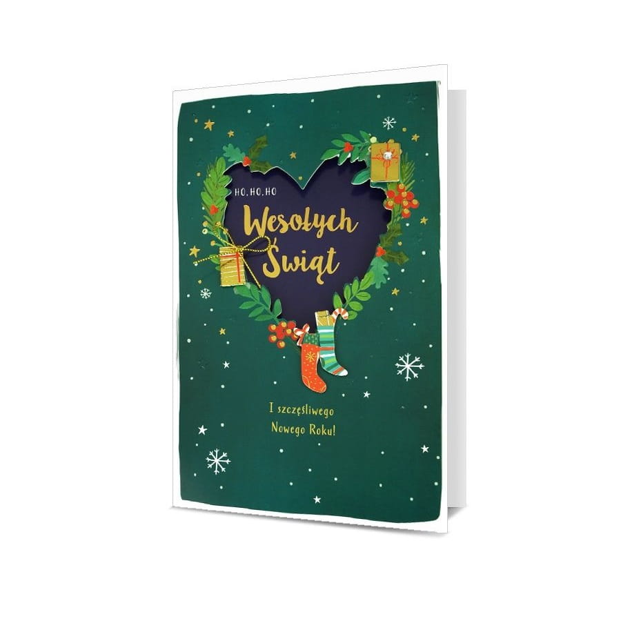 Kartka świąteczna na Boże Narodzenie: Wesołych Świąt i Szczęśliwego Nowego Roku.