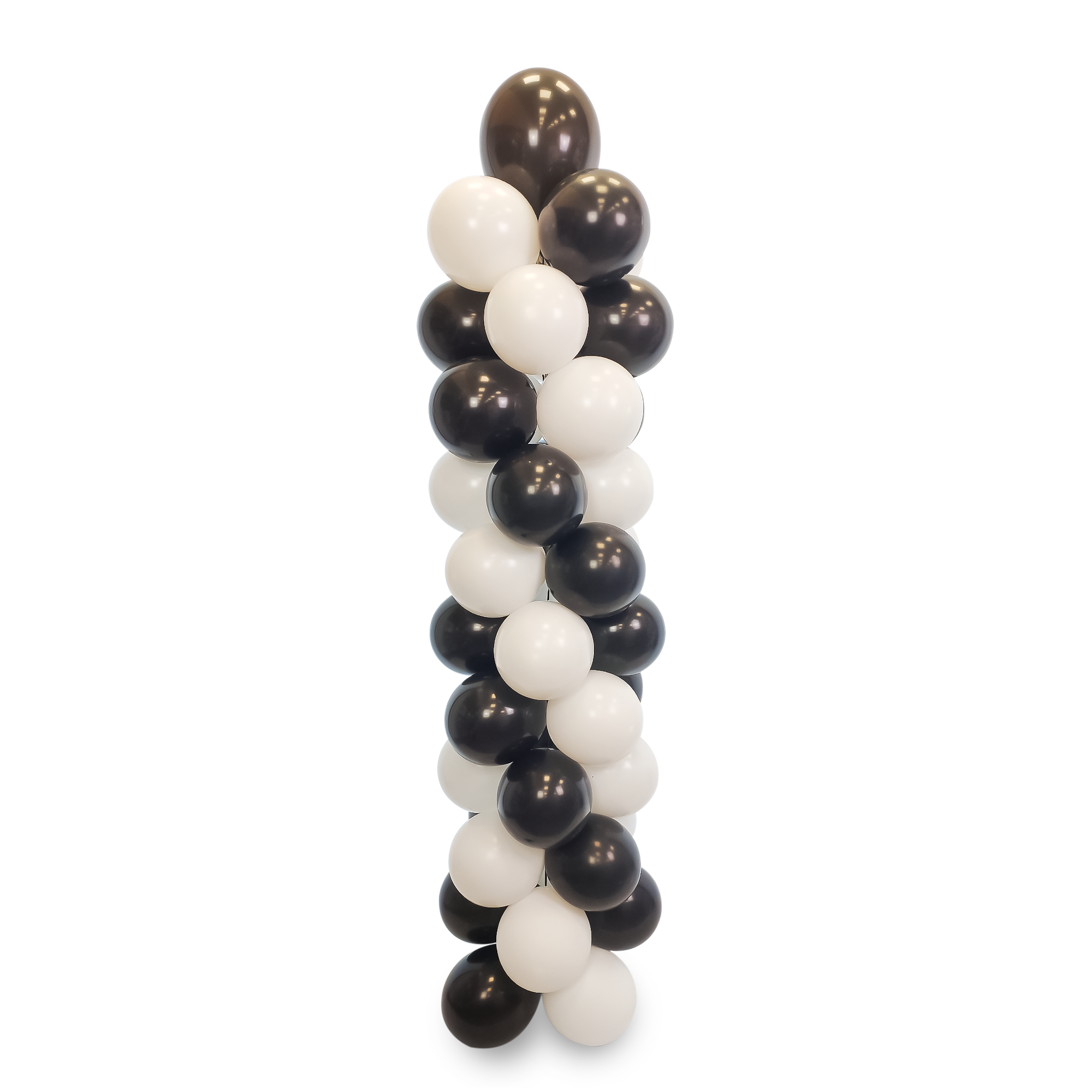 Kolumna wykonana z balonów lateksowych w kolorze czarnym pastelowym i białym pastelowym.