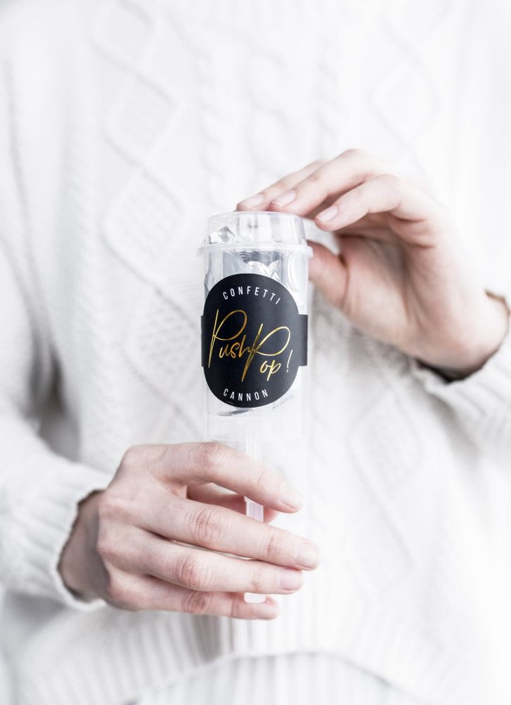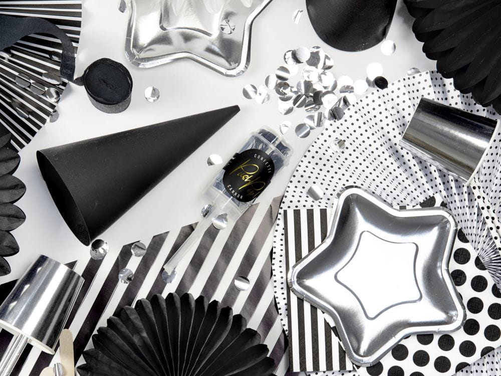 Prezentowane Państwu konfetti push-pop zachwyca wysoką jakością produkcji. Do jego wykonania użyto pięknej folii w kolorze srebrnym. U podstawy posiada praktyczny drążek, który po wypchnięciu powoduje wystrzał efektownych, mieniących się w świetle drobinek.