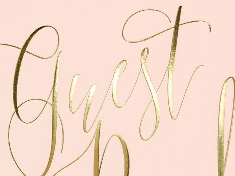 Księga gości weselnych różowa ze złotym napisem