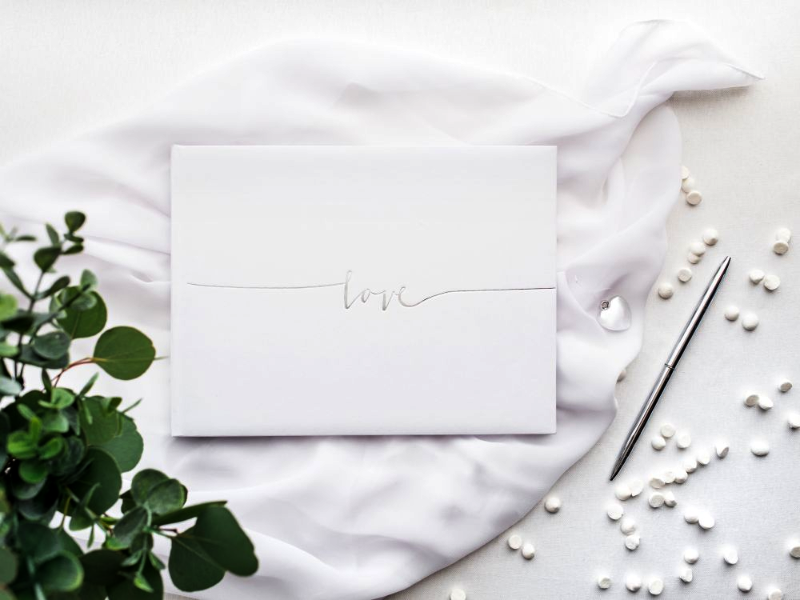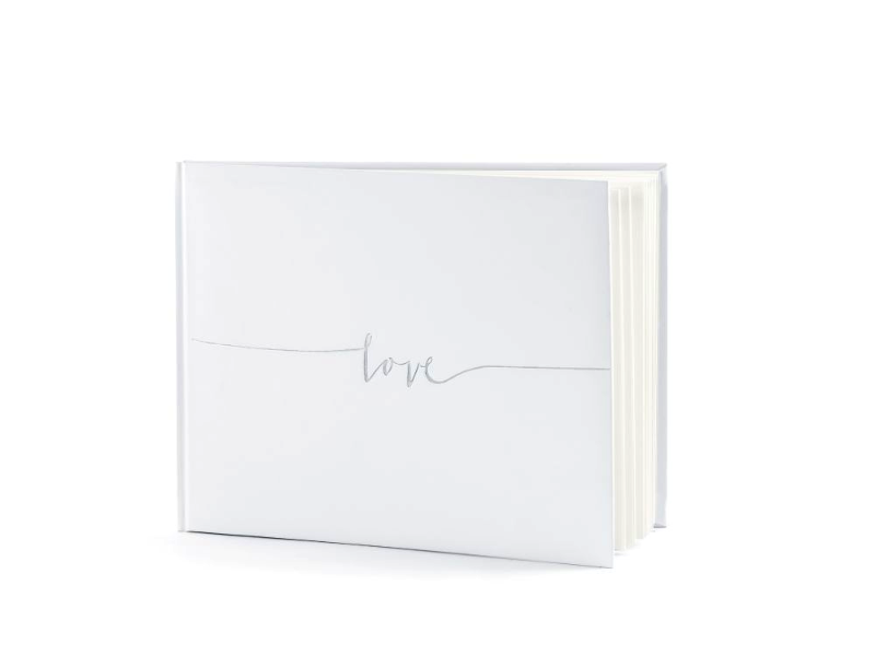 Księga gości weselnych biała ze srebrnym napisem