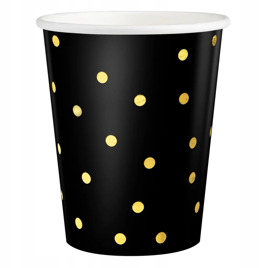 Kubeczki papierowe czarne w złote kropki 220ml 6 szt