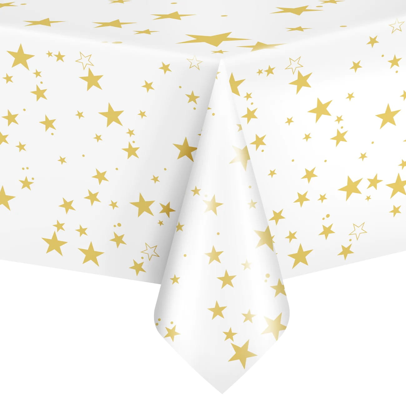 Obrus foliowy biały w złote gwiazdki 137 cm x 274 cm