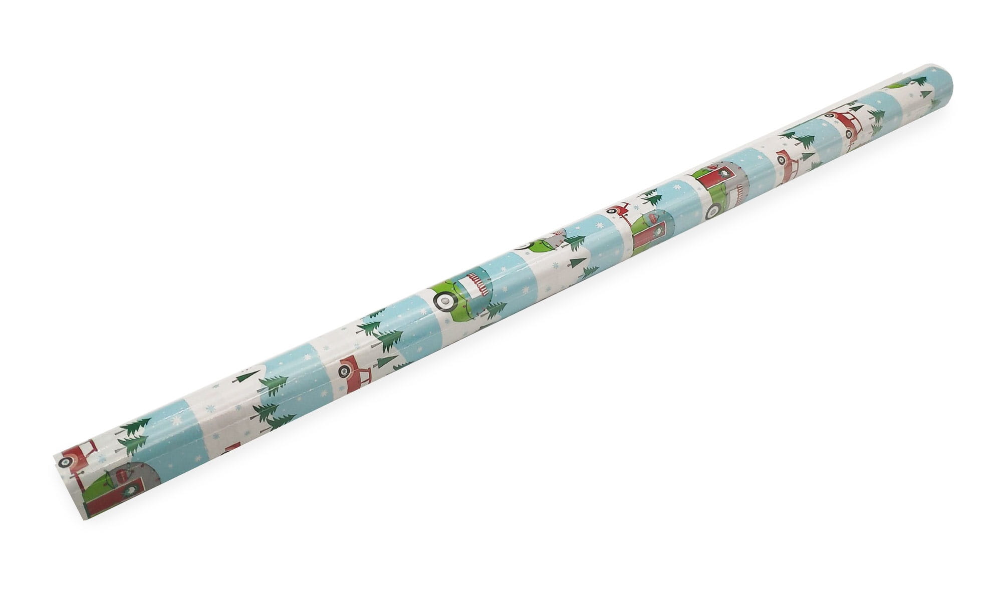 Oferowany papier świąteczny z Bożonarodzeniowym nadrukiem świetnie sprawdzi się do pakowania prezentów i upominków dla miłośników kamperów i kempingów.
