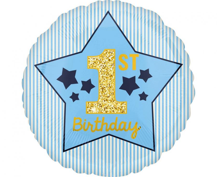 Balon foliowy 1 st Birthday niebieski okrągły 18 cali