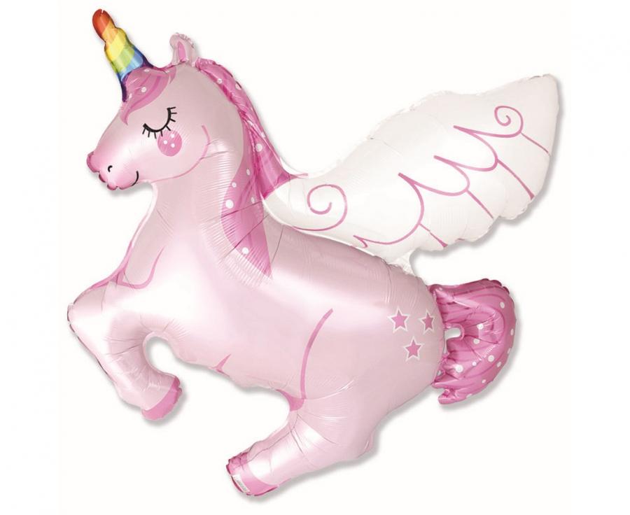 Balon foliowy 24 cale - Jednorożec - Tęczowy róg różowy pakowany