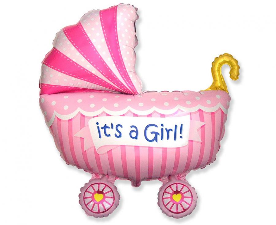 Balon foliowy 24 cale - "Wózek dla dziewczynki" (różowy) pakowany