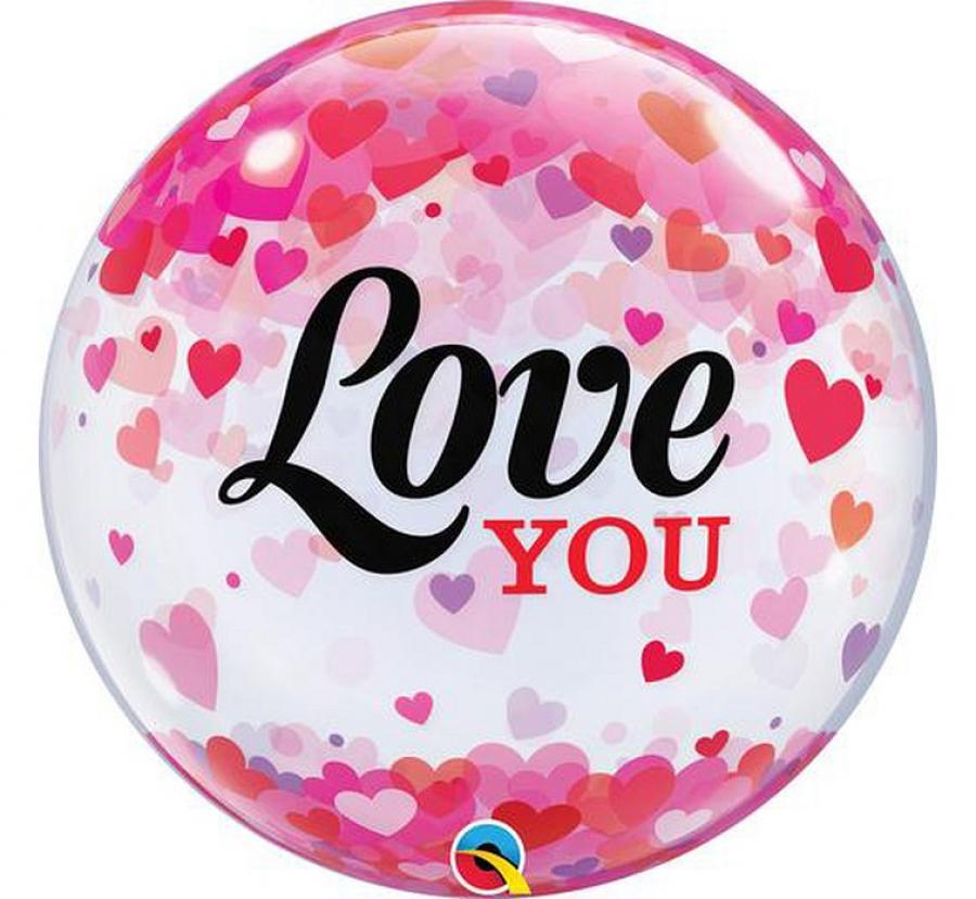 Balon foliowy Bubble Love You Confetti Hearts 22 cale