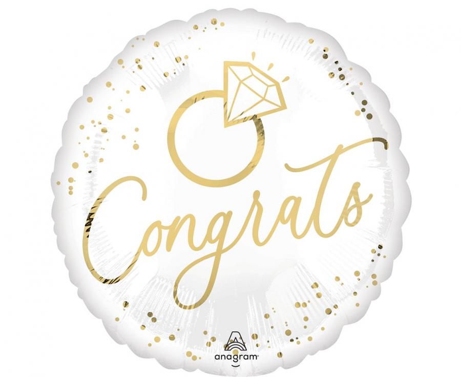 Balon foliowy Congrats white gold wedding okrągły 18 cali