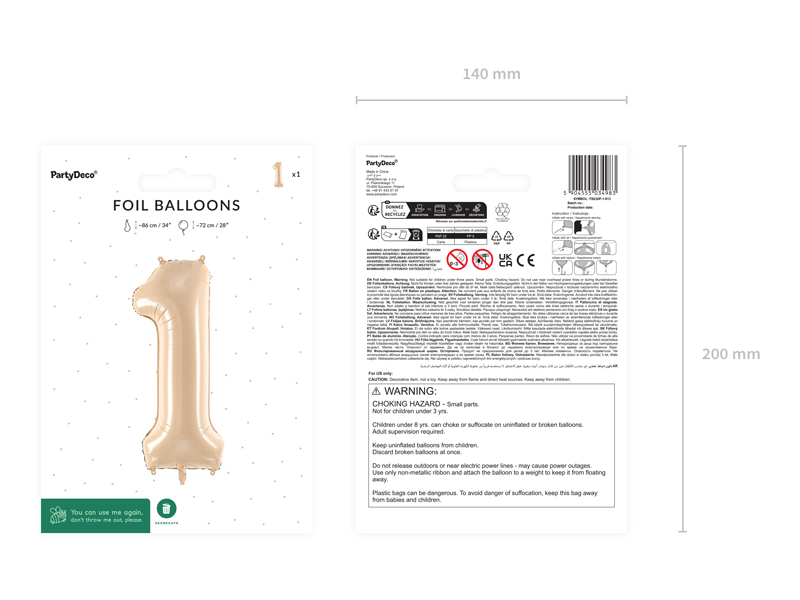Balon foliowy Cyfra 1 beż 72 cm