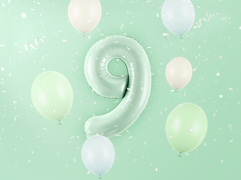 Balon foliowy Cyfra 9 zieleń 72 cm