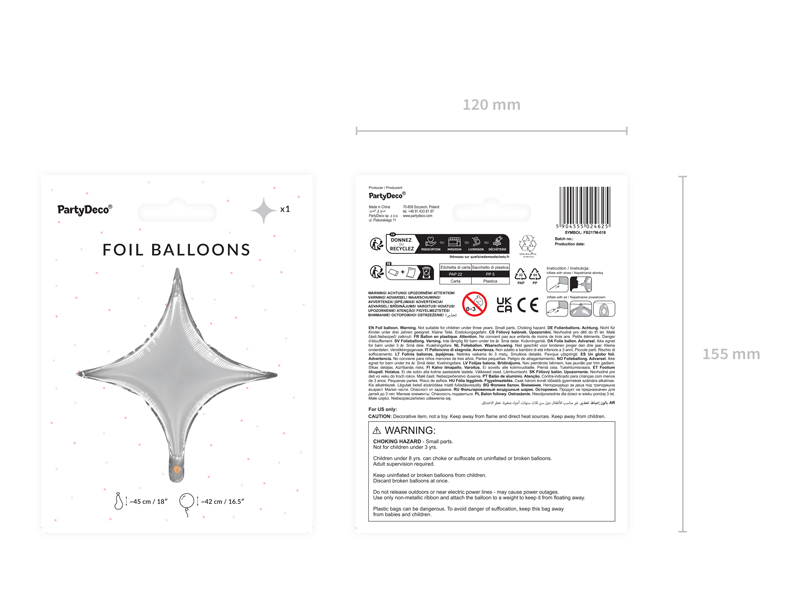 Balon foliowy Gwiazda 4-ramienna srebrny 45 cm