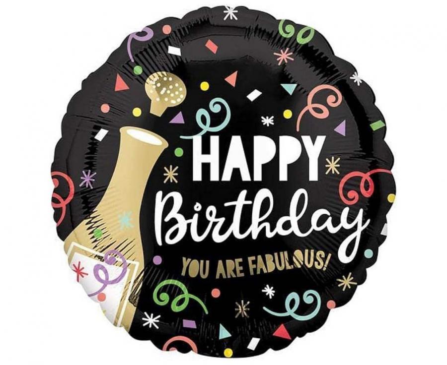 Balon foliowy Happy Birthday Gold Bubbly okrągły 18 cali