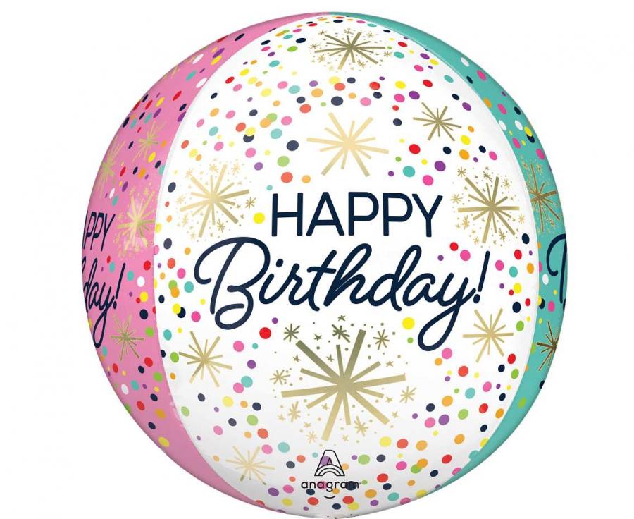 Balon foliowy Happy Birthday ORBZ confetti sprinkle 21 cali