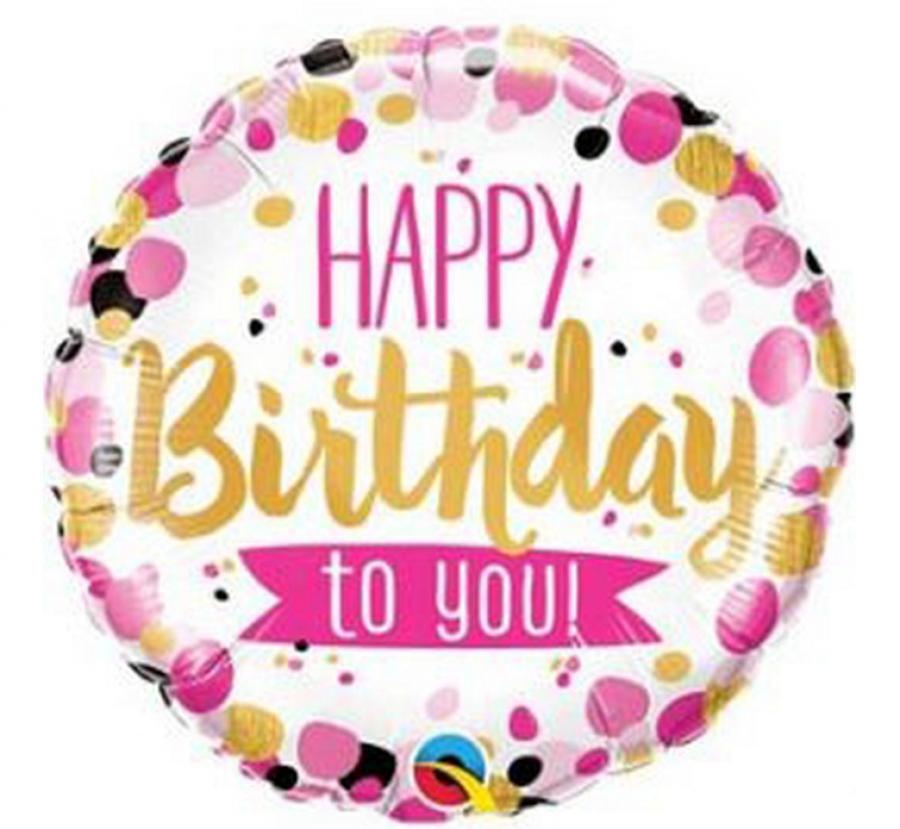 Balon foliowy Happy Birthday To You Pink & Gold Dots okrągły 18 cali