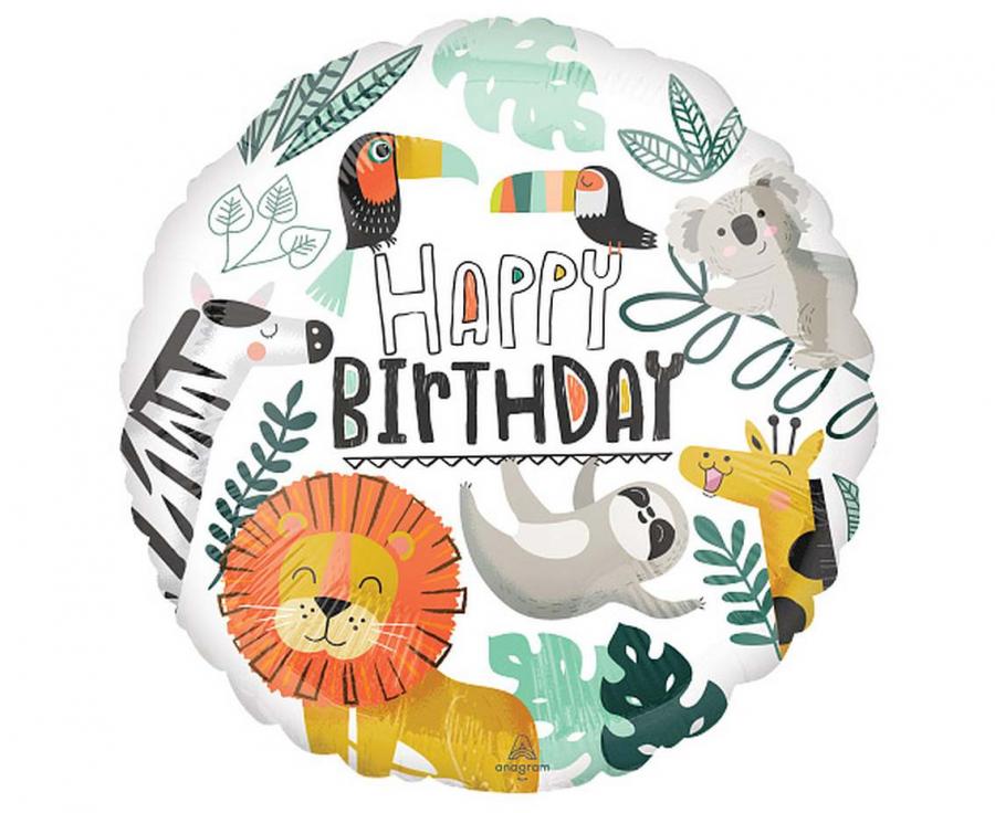 Balon foliowy Happy Birthday dżungle okrągły 18 cali