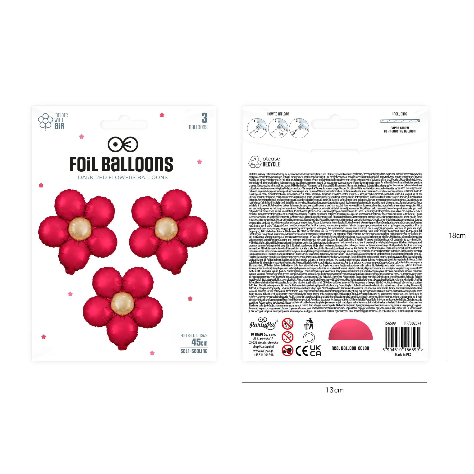 Balon foliowy Kwiat czerwony matowy 45 cm 3 szt