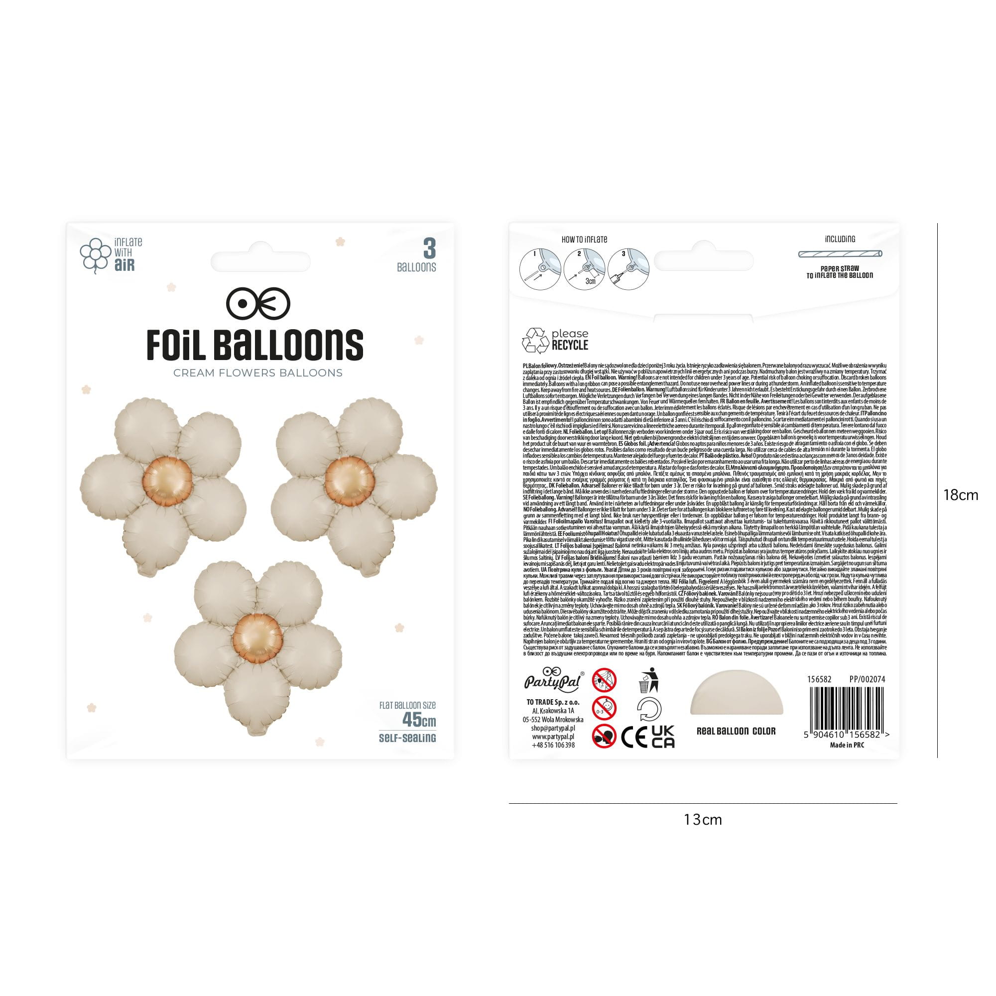 Balon foliowy Kwiat kremowy matowy 45 cm 3 szt