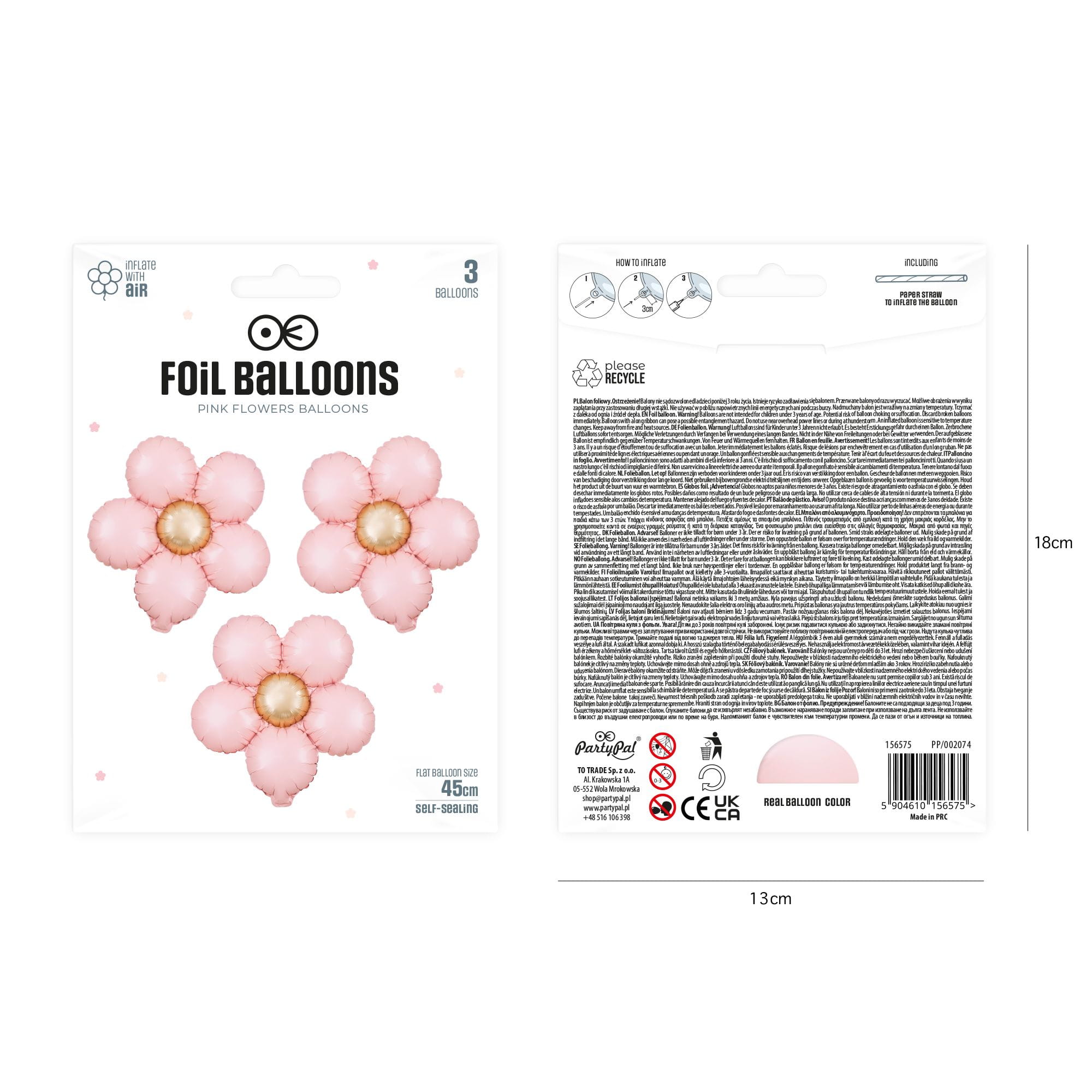 Balon foliowy Kwiat różowy matowy 45 cm 3 szt