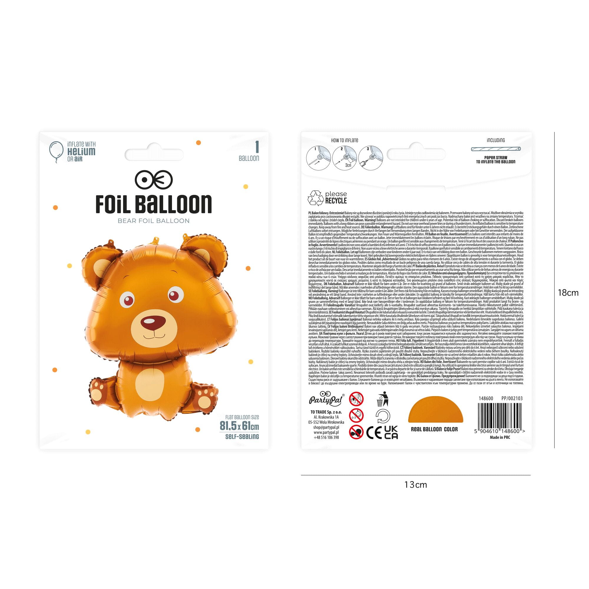 Balon foliowy Niedźwiadek 81 cm