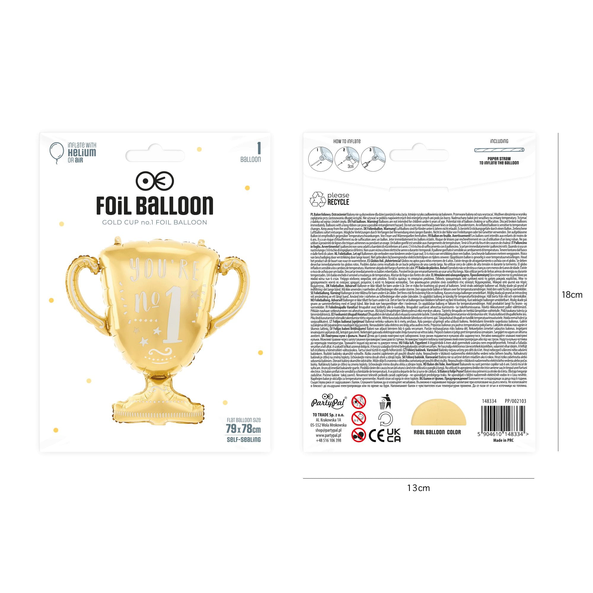 Balon foliowy Puchar You re no.1 złoty 79 cm