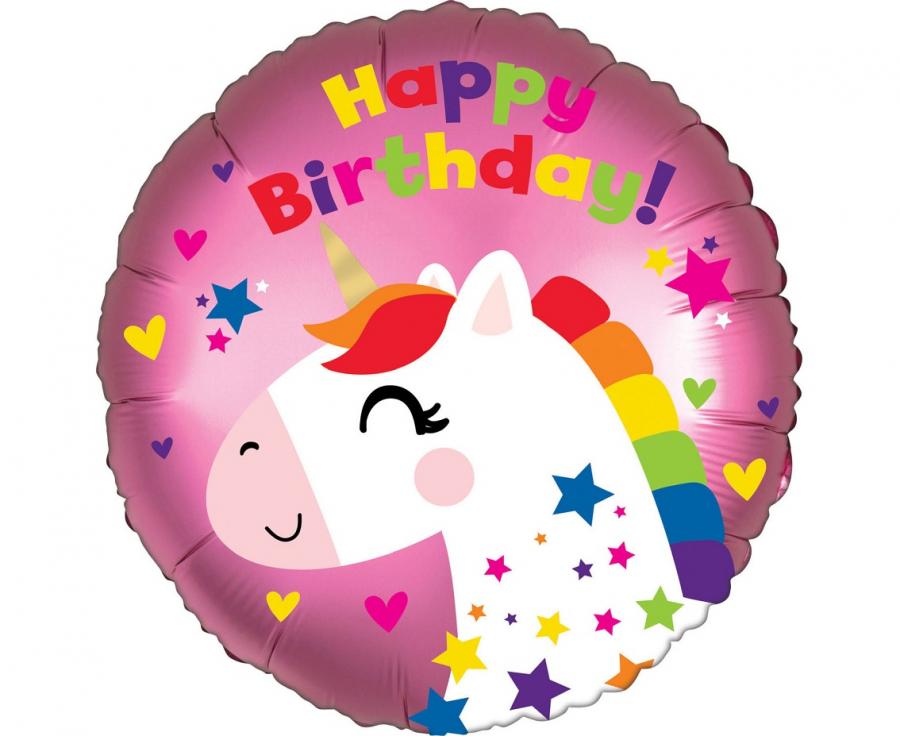 Balon foliowy Urodzinowy jednorożec okrągły 18 cali