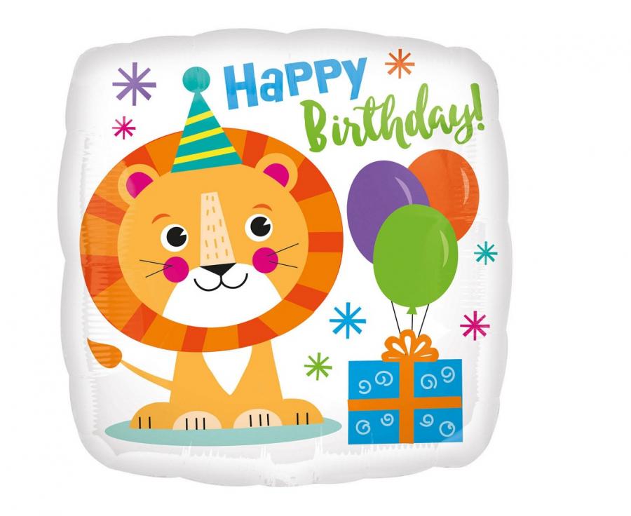 Balon foliowy Urodzinowy lew okrągły 18 cali