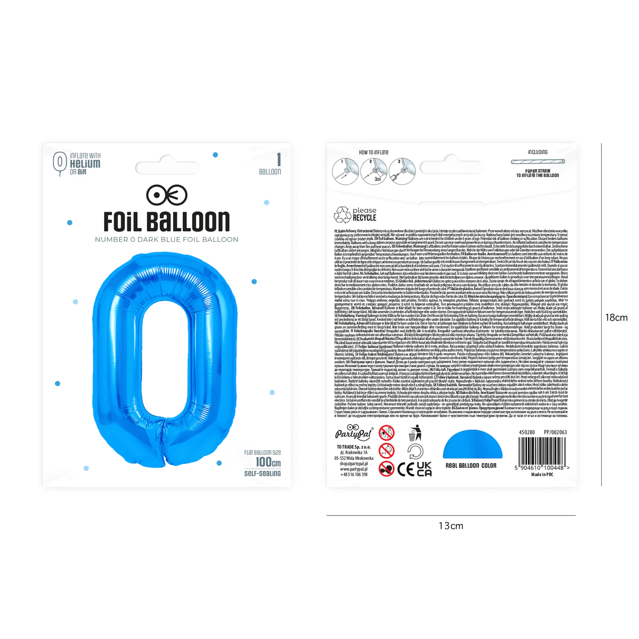 Balon foliowy cyfra 0 ciemnoniebieski 85 cm