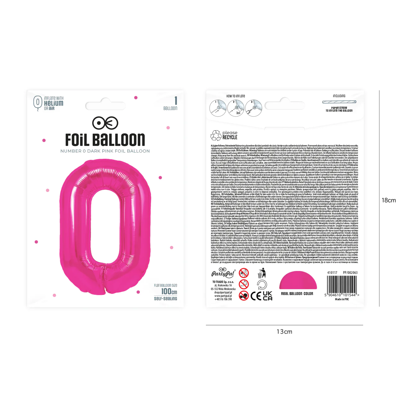 Balon foliowy cyfra 0 ciemnoróżowy 85 cm