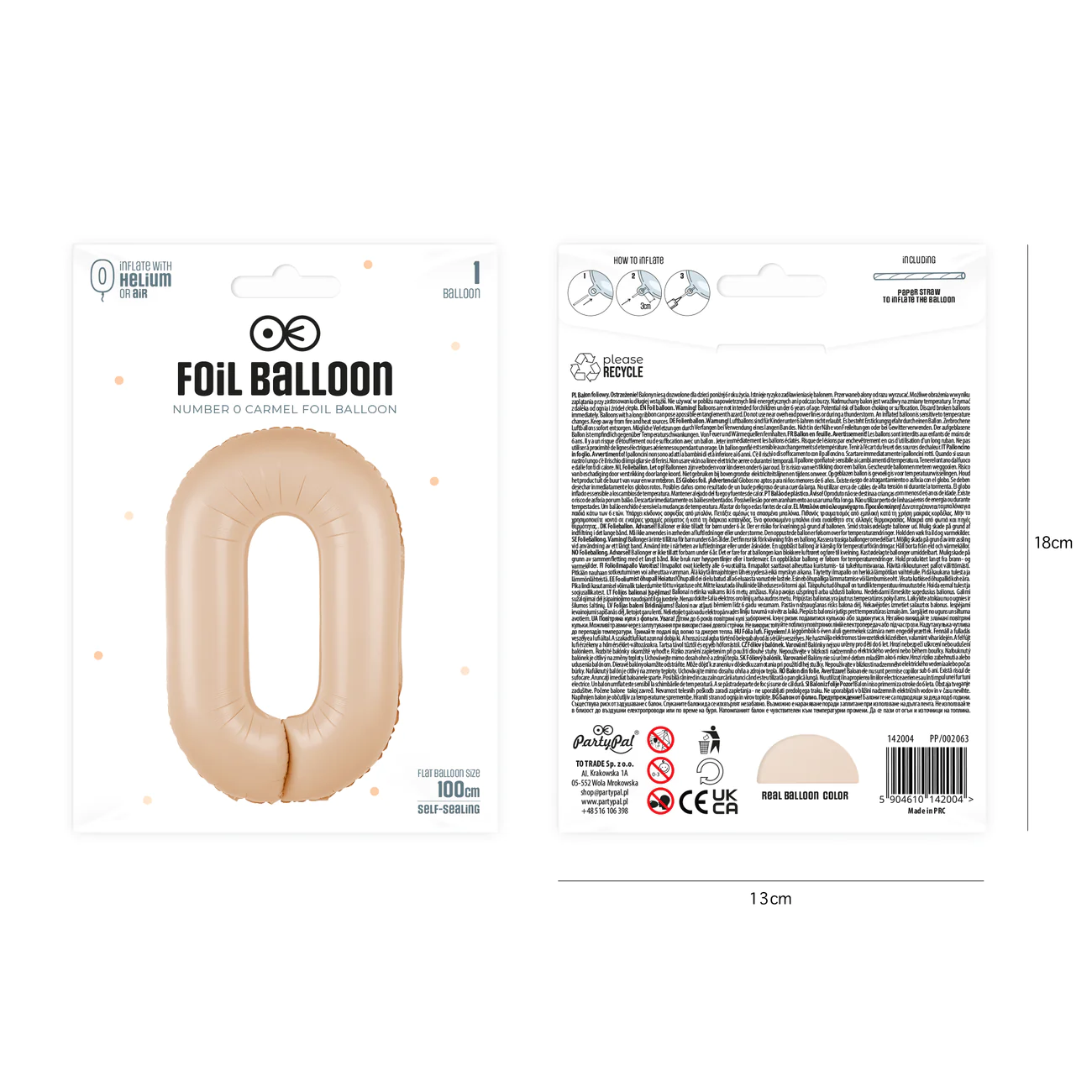 Balon foliowy cyfra 0 kremowy karmelowy 85 cm